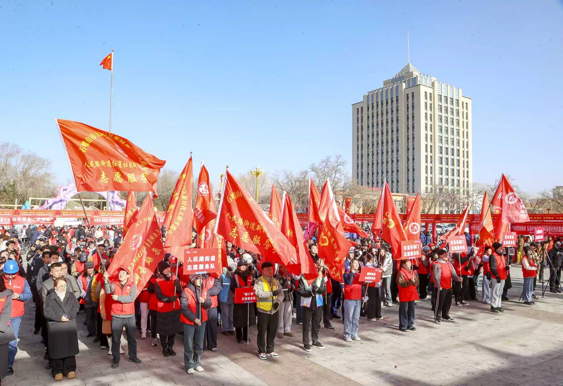 三月春风暖,志愿正当时。3月5日,石嘴山市2026年“3·5”学雷锋志愿服务集中展示活动启动仪式在大武口和平广场举行。活动现场人头攒动,爱心涌动,来自全市各界的志愿者代表、文明单位代表以及广大市民共同参与,用行动传递温暖,用奉献点亮文明。