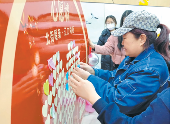 在趣味游戏环节,同心接力、邻里默契大考验等互动项目轮番登场,商户代表与新就业群体从业者自发组队、携手闯关,彼此的情谊在并肩协作中持续升温。大家在一旁的心愿墙前认真写下心中期许,既有“希望工作顺利,平安顺遂”的个人心愿,更有“增设便民休憩点”“常联动共发展”的期盼,一张张小小的便签既承载着大家对美好生活的向往,更彰显着大家共建幸福家园的初心。