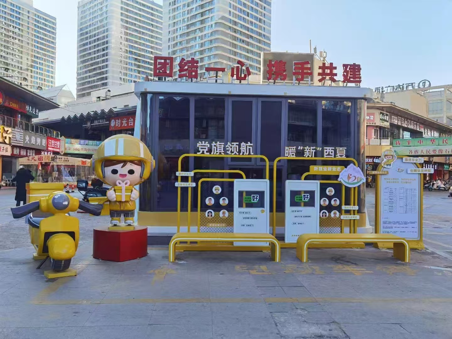 从“零散服务”到“体系友好”,西夏区推动楼宇、街区、商圈、小区等友好场景建设,形成“点、线、面”立体服务网络。先后建成万达友好商圈、怀远夜市友好街区等11处特色友好场景,优化58个“塞上红色驿站”,动员200余家临街商铺、银行等加入友好商户阵营。同时,创新制定西夏区全域友好地图导引,一键导航停车区、就餐区、医疗点,让新就业群体“一图在手,服务全有”。(图片由受访者提供)