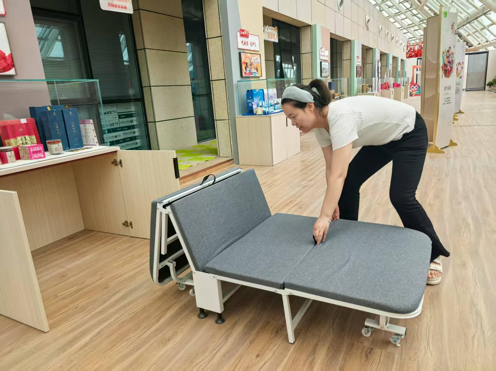 德宁“悦+”客厅楼宇党群中心里的折叠床,解决了楼宇内职工中午无处午休的烦恼。