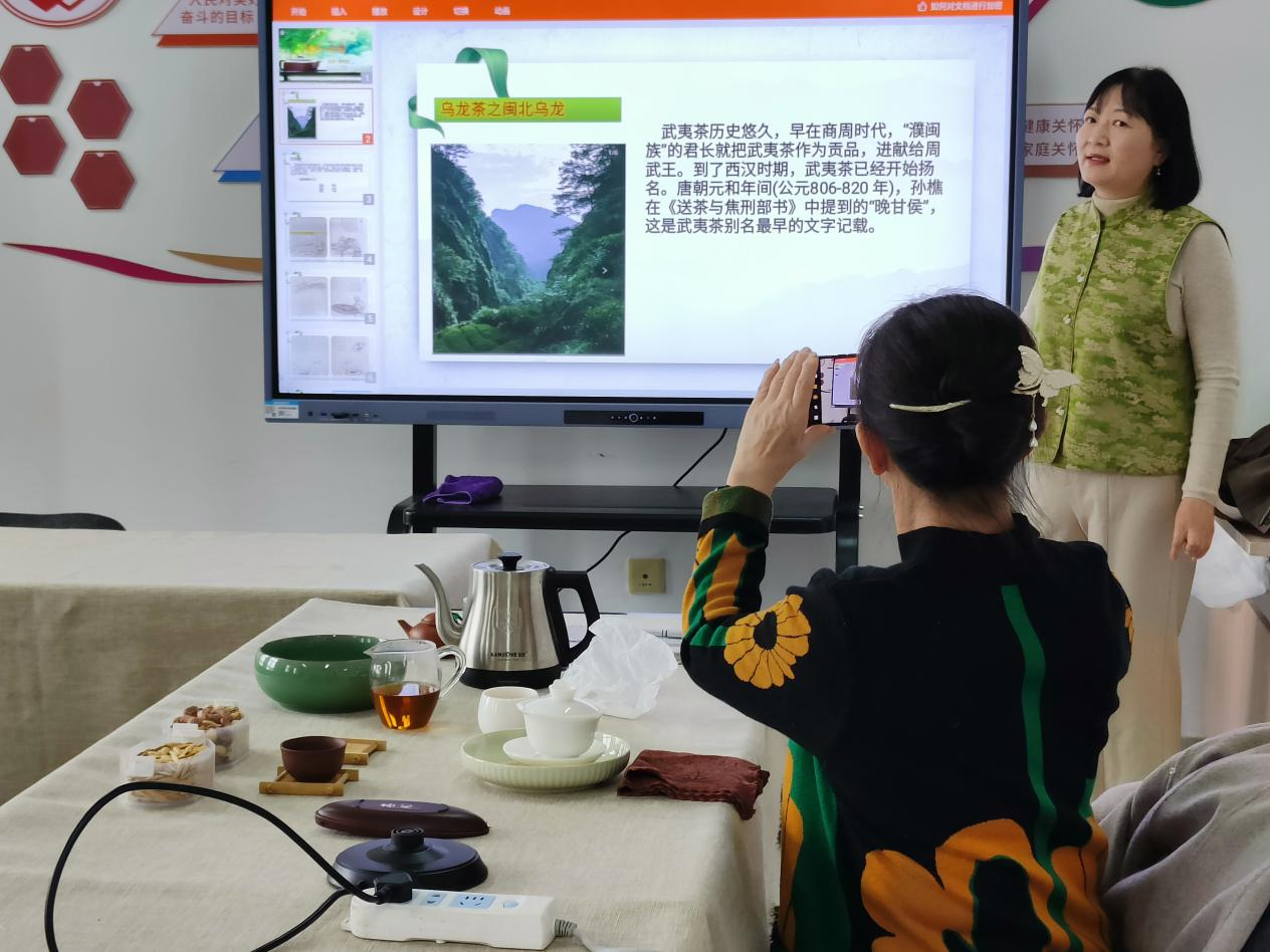 燕庆园社区老年大学茶艺班正在为学员上课。