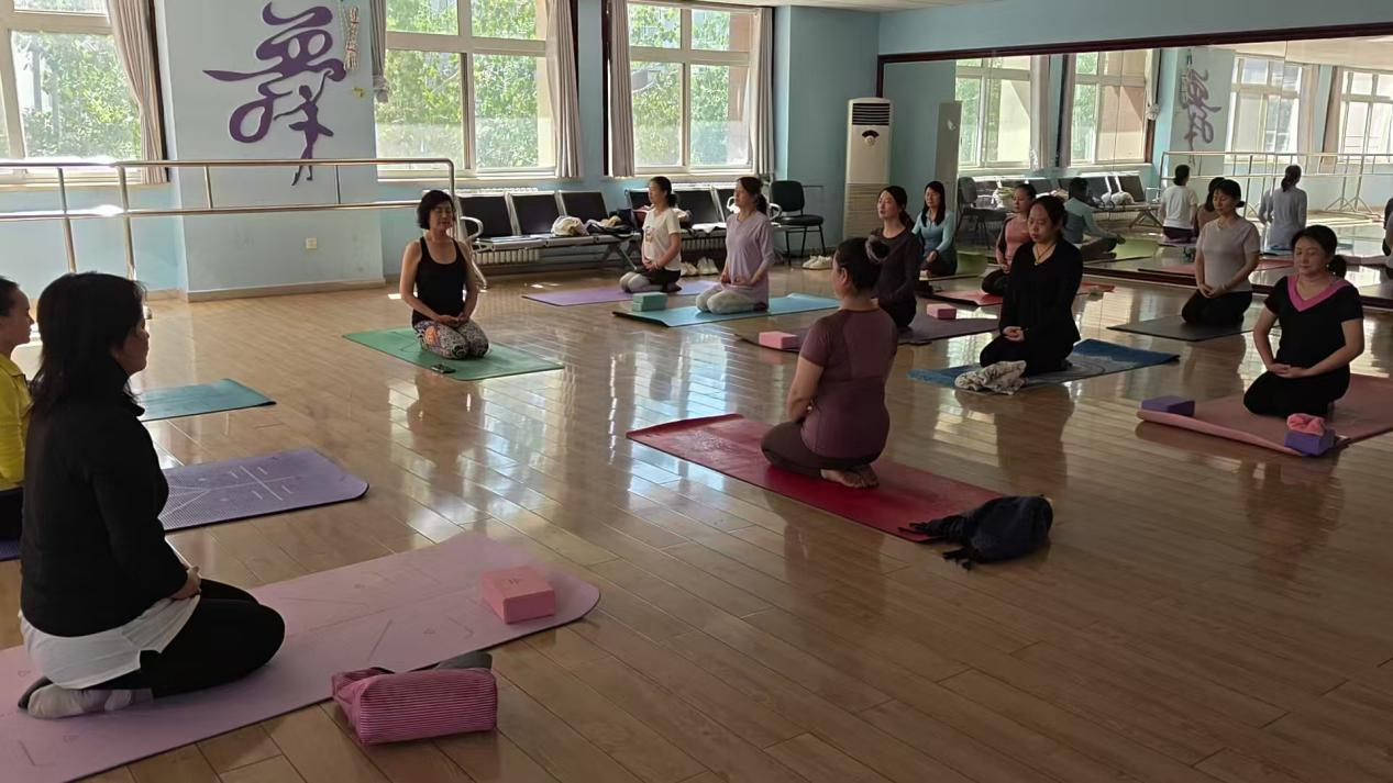 燕庆园社区老年大学瑜伽班正在为学员上课。