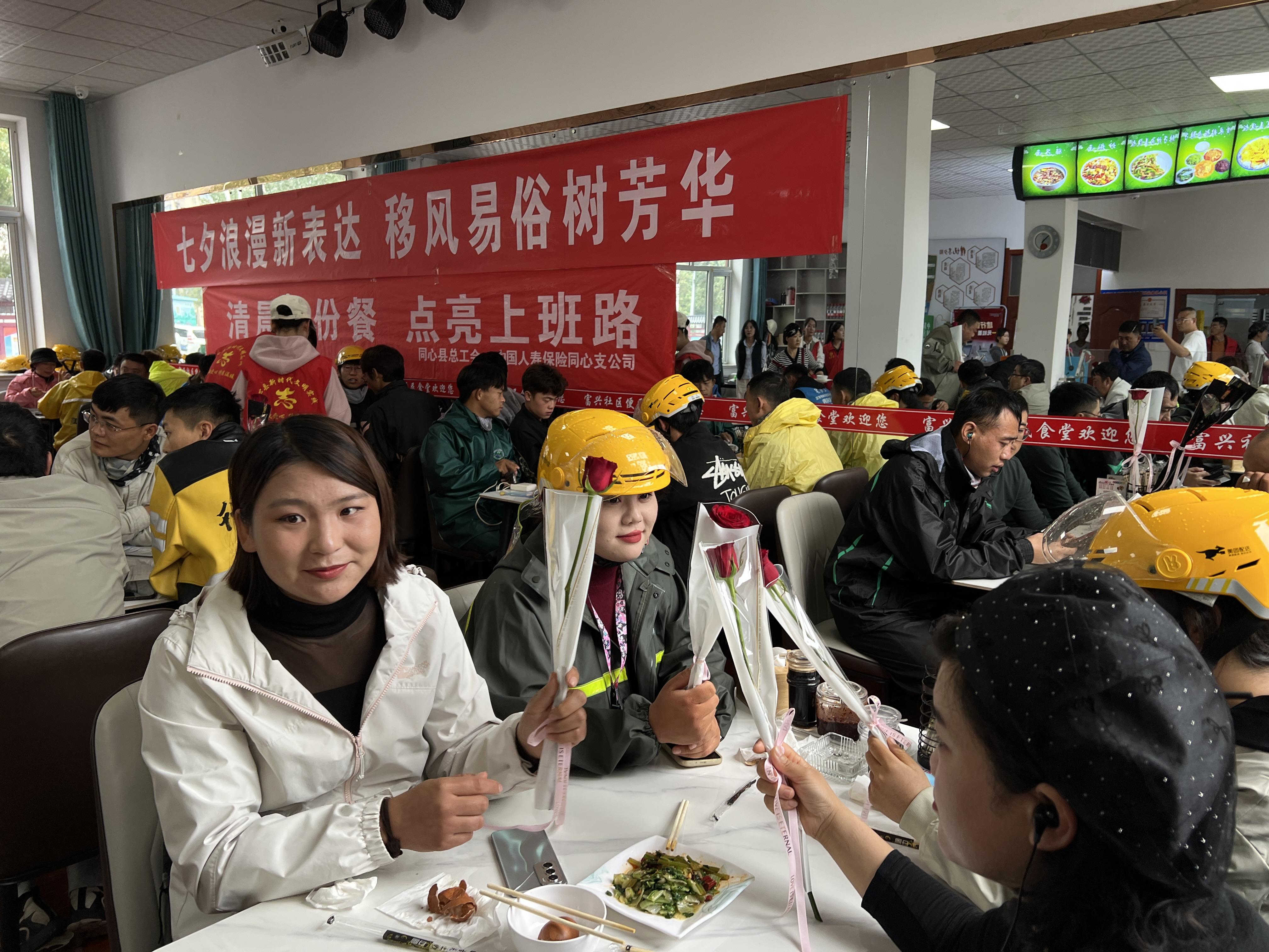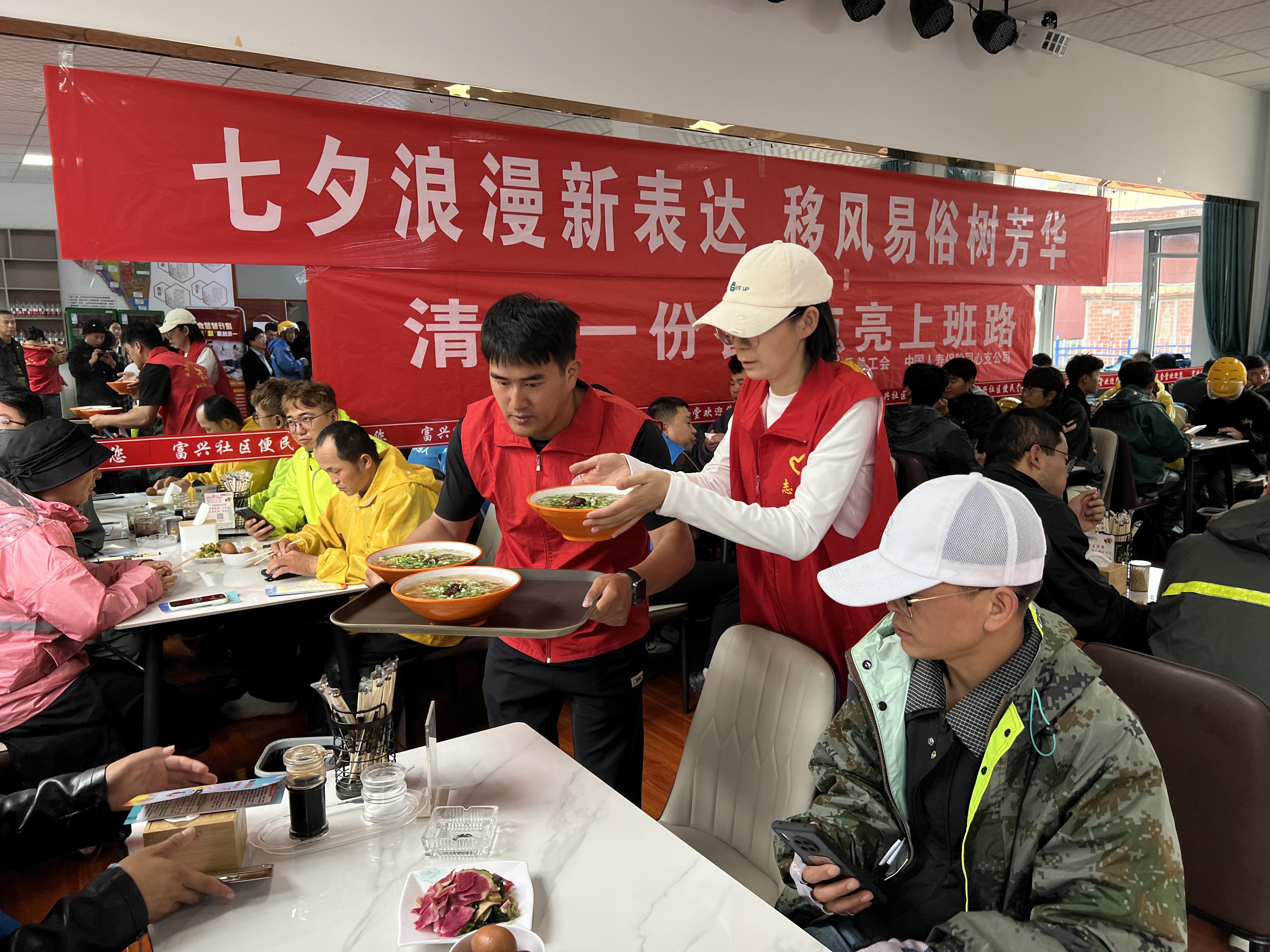 刚停好电动车的快递员白少云,还没进门就收到了志愿者递来的热毛巾。“昨儿群里说今天有拉面,我特意绕过来的。”他笑着说。面刚上桌,一支系着卡片的玫瑰花也紧跟着递到了眼前。红色花瓣沾着晨露,卡片上“七夕安康”四个字让他怔了怔。他小心地把花放进车筐,原本那里只放着一杯要带给妻子的豆浆。